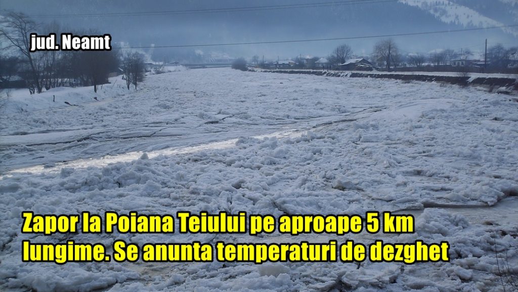 Zăpor la Poiana Teiului pe aproape 5 km lungime. Se anunță temperaturi de dezgheț