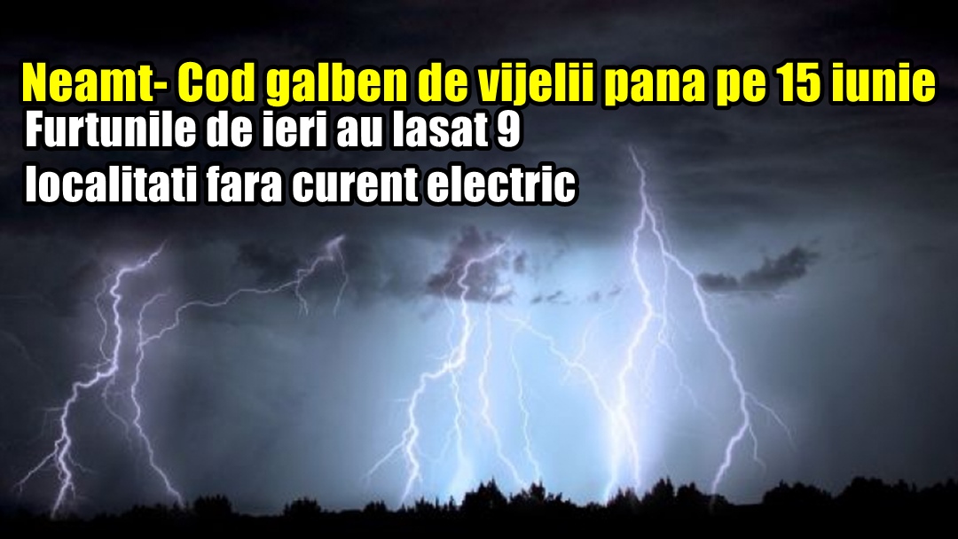 Neamț- Cod galben de vijelii până pe 15 iunie. Furtunile de ieri au lăsat 9 localități fără curent electric