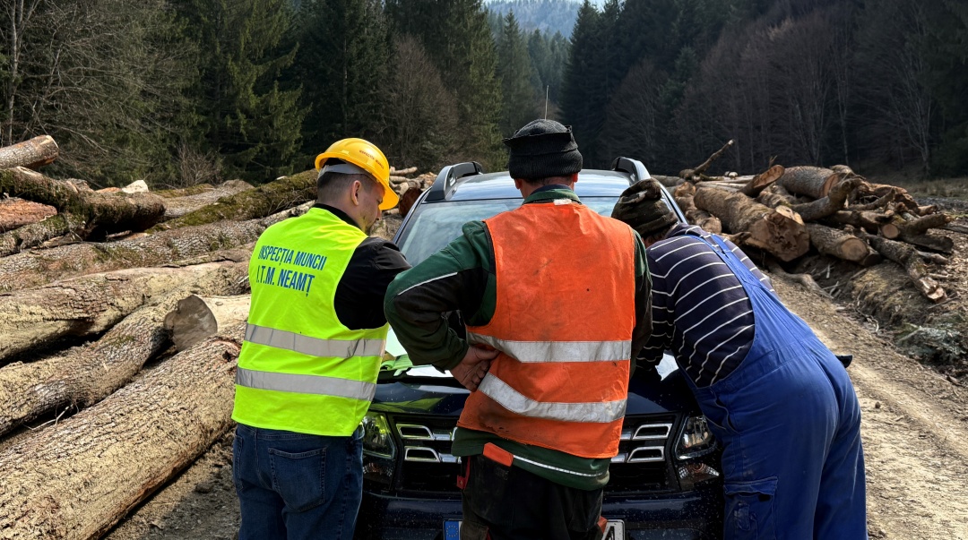 Controale ITM Neamț în exploatări forestiere. Muncitori la negru, nereguli grave în protecția muncii, amenzi de zeci de mii de lei