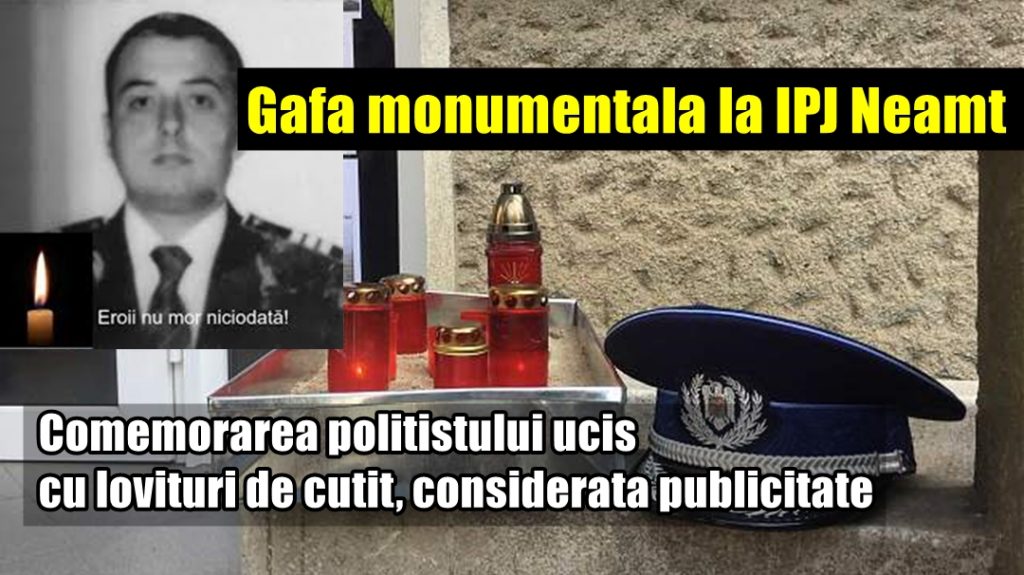 Gafă monumentală la IPJ Neamț- comemorarea polițistului ucis, considerată publicitate
