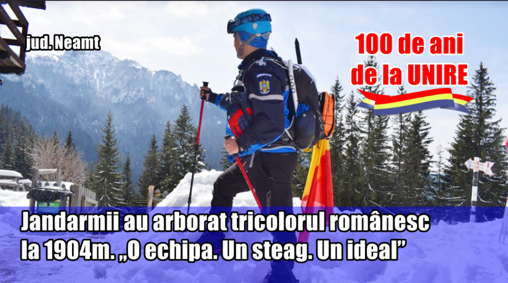 100 de ani de la UNIRE- Jandarmii au arborat tricolorul românesc la 1904m. ,,O echipă. Un steag. Un ideal”