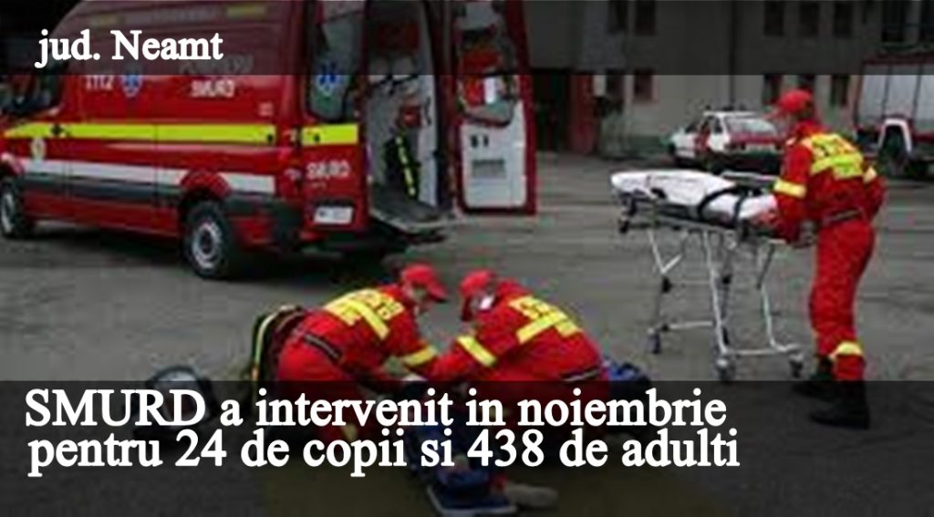 SMURD a intervenit în noiembrie pentru 24 de copii și 438 de adulți