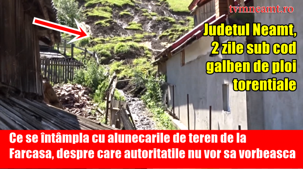 Județul Neamț, 2 zile sub cod galben de ploi torențiale. Ce se întâmplă cu alunecările de teren de la Farcașa, despre care autoritățile nu vor să vorbească
