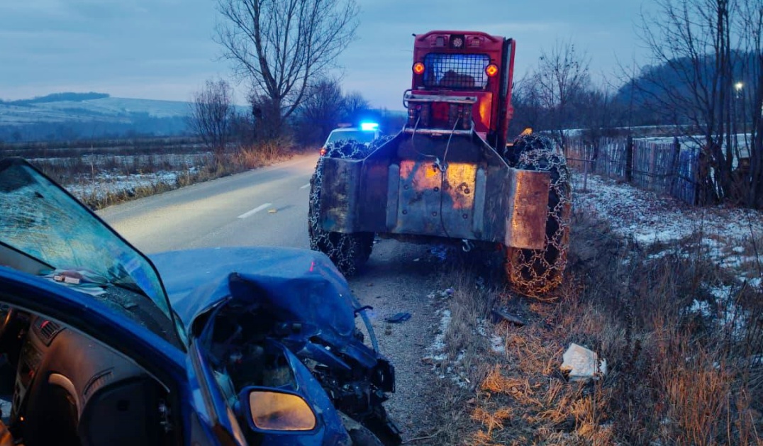 Autoturism sfărâmat într-un TAF condus de un tânăr fără permis. Doi bărbați au ajuns la spital