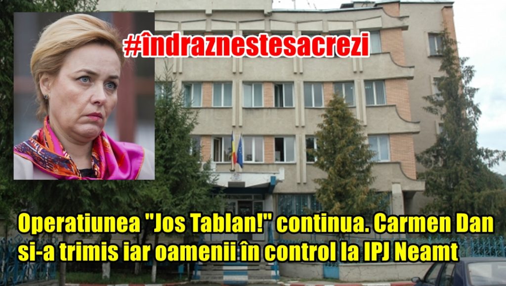 Operațiunea ”Jos Tablan!” continuă. Carmen Dan și-a trimis iar oamenii în control la IPJ Neamț