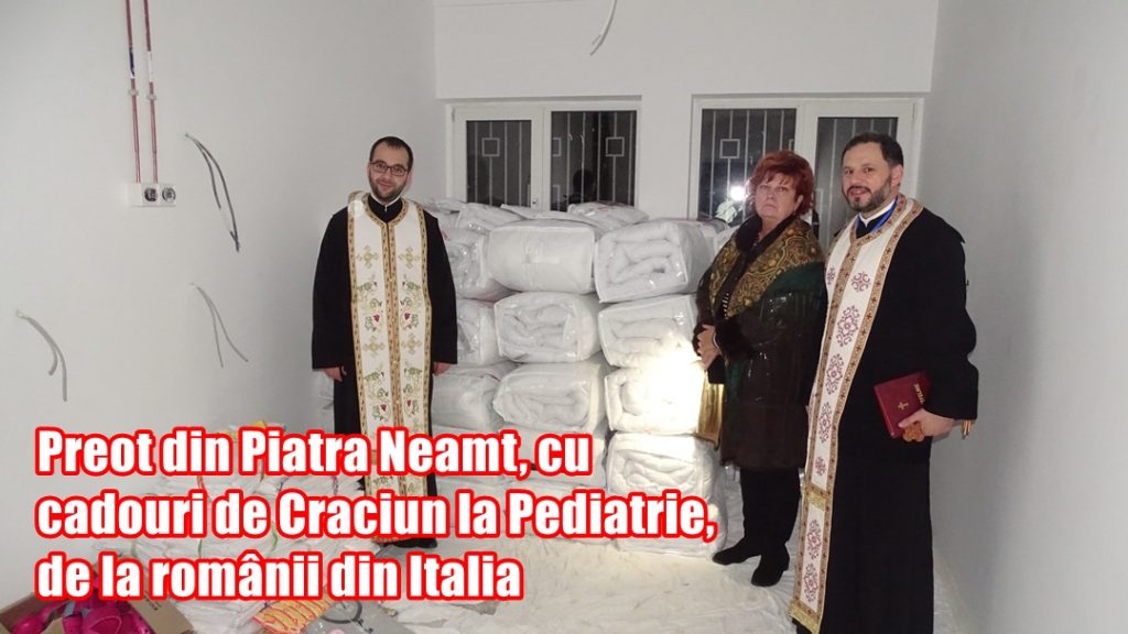 Preot din Piatra Neamț, cadouri de Crăciun la Pediatrie, de la românii din Italia