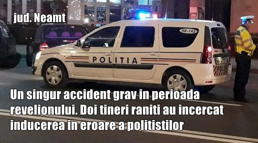 Un singur accident grav în perioada revelionului. Doi tineri răniți au încercat inducerea în eroare a polițiștilor