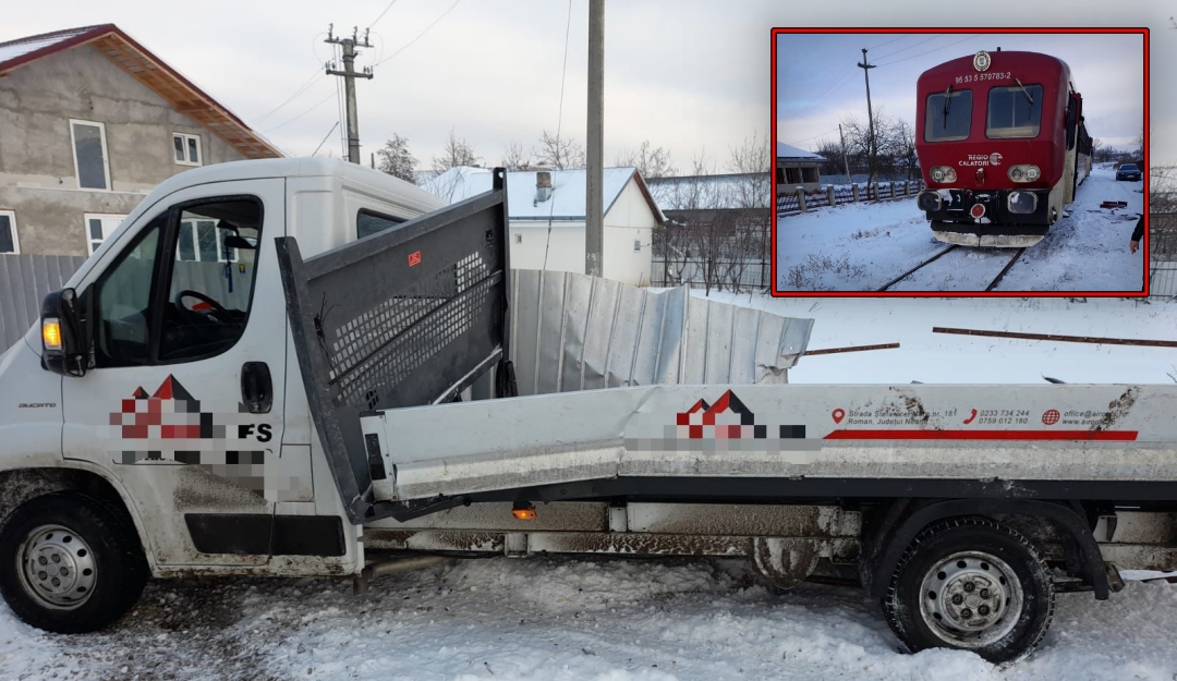 Ziua lui norocoasă! Un șofer a scăpat doar cu permisul suspendat după ce a fost lovit de tren